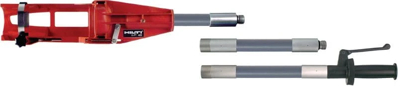 Extension system for DX tools to make overhead fastenings to ceilings